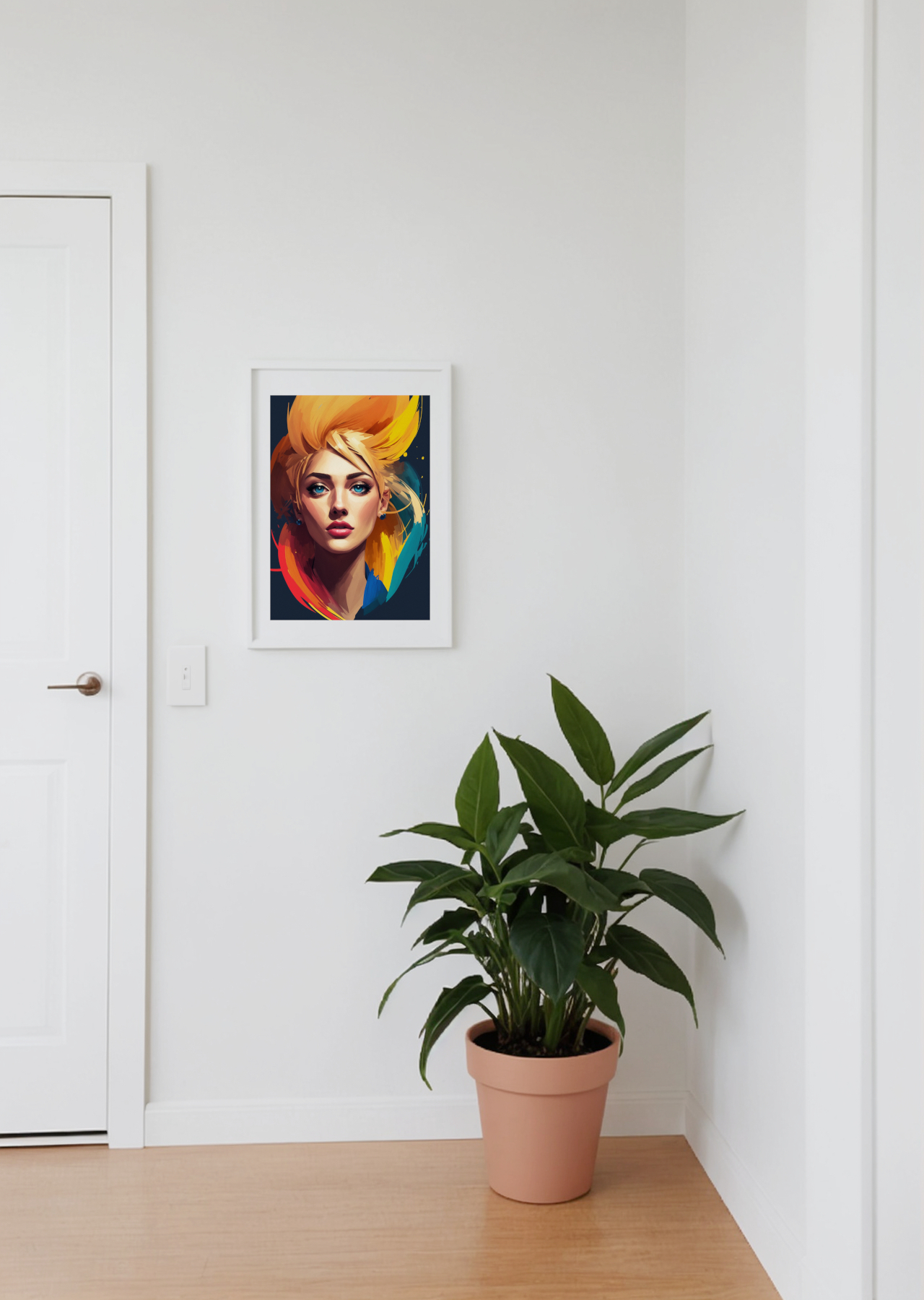 Das Poster „Colorful Popart Creativity” bringt dynamische Farben und moderne Kunst auf harmonische Weise zusammen. Im Mittelpunkt steht eine beeindruckende Frauenfigur mit lebendigen, ausdrucksstarken Augen, umrahmt von fließenden Farbakzenten in Gelb, Orange und Blau. Die kräftigen Farben und der künstlerische Stil verleihen dem Bild eine besondere Energie, die in jedem Raum für einen atemberaubenden Blickfang sorgt. Der sanfte, aber entschlossene Ausdruck der Frau vermittelt Eleganz und Stärke zugleich.