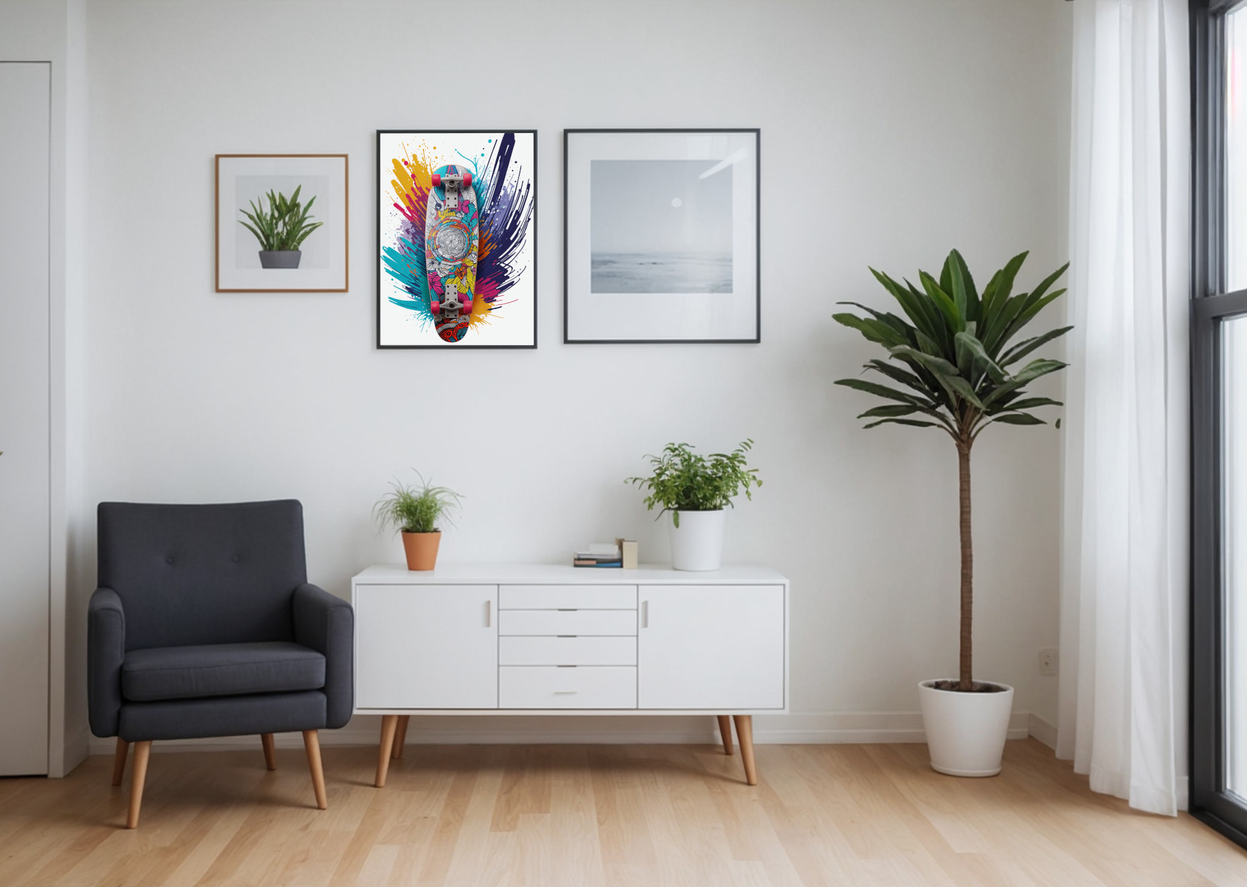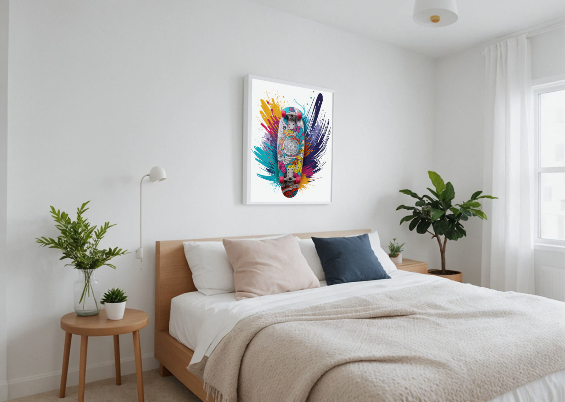 Dieses Wandbild ist ideal für Skateboard-Fans, Street-Art-Liebhaber oder alle, die ihrem Zuhause einen coolen, urbanen Touch verleihen möchten. Ob im Jugendzimmer, Wohnzimmer oder Büro – dieses Kunstwerk bringt Bewegung und Kreativität in jeden Raum.